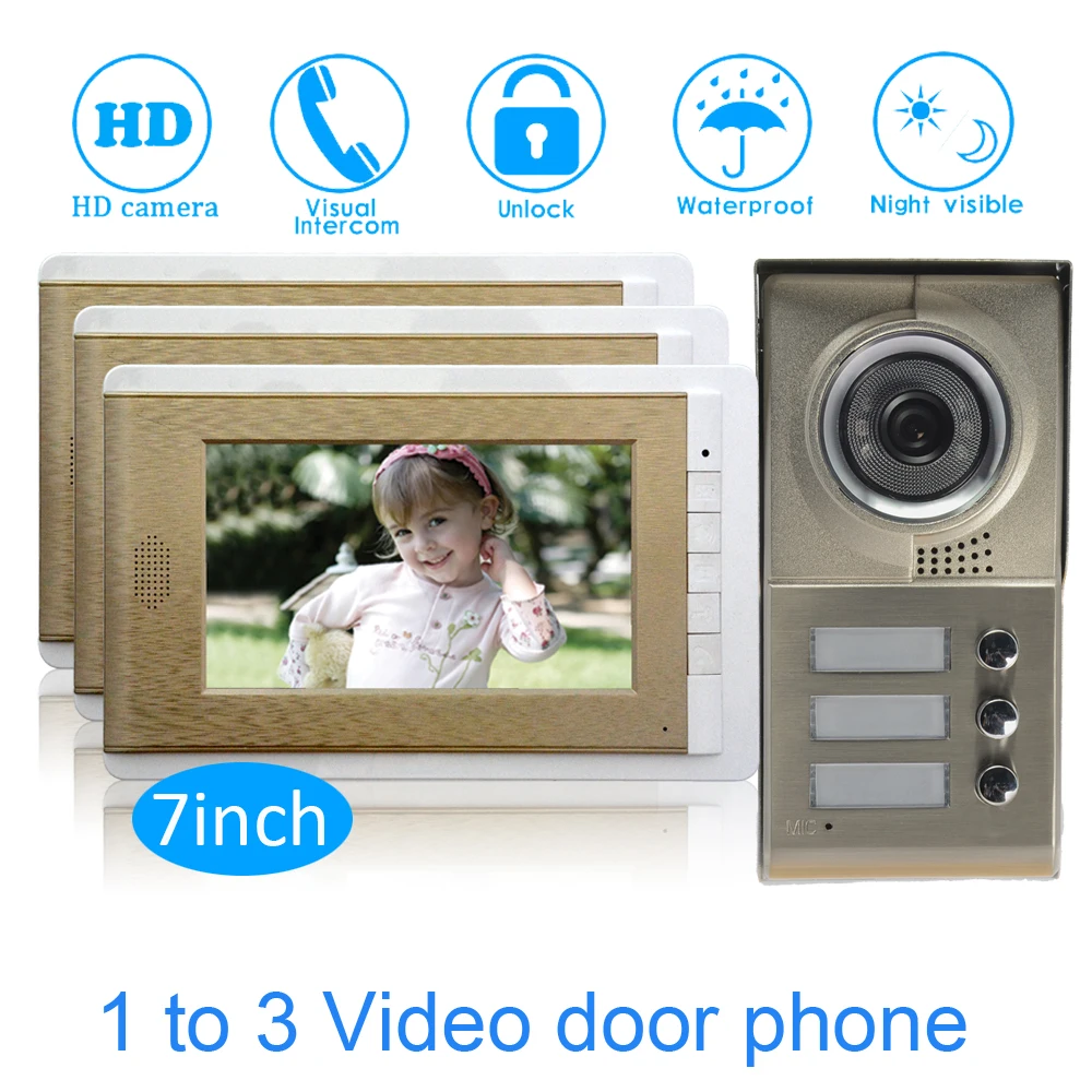 TOP Family use one to three video door phone system 7'' Monitor LCD Panel wire type Water proof functio