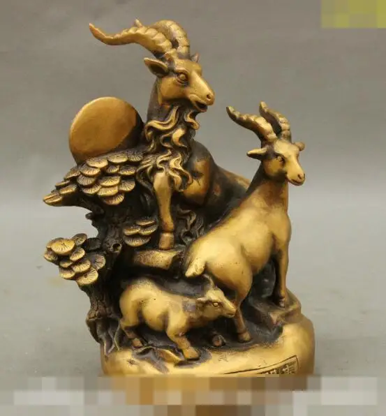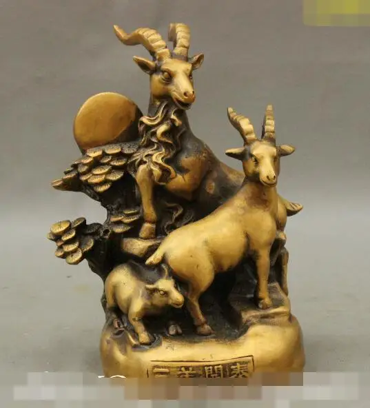 BEST S02621 8 Chinese FengShui Bronze Happy Family Sheep Goat Lamb Home Art Statue Sculpture B0403