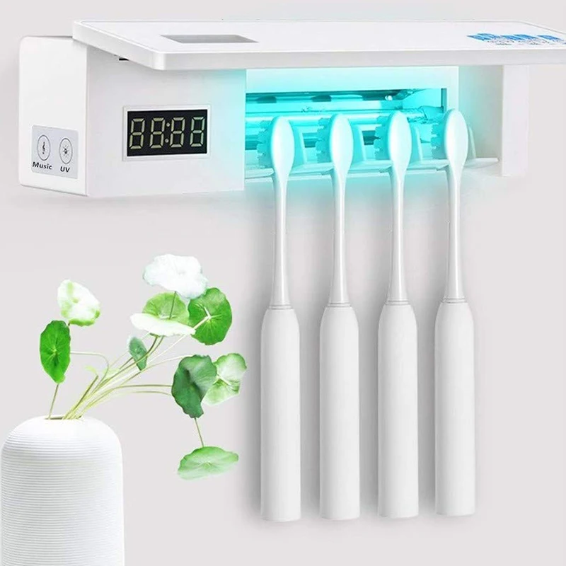TOP Toothbrush Holder 4 Toothbrush Sterilizer Holder 5-Minute Timer LED Display Wall Mounted Family Too