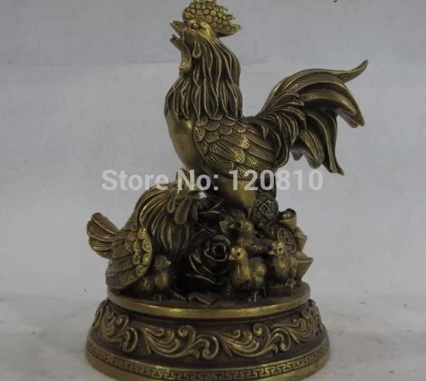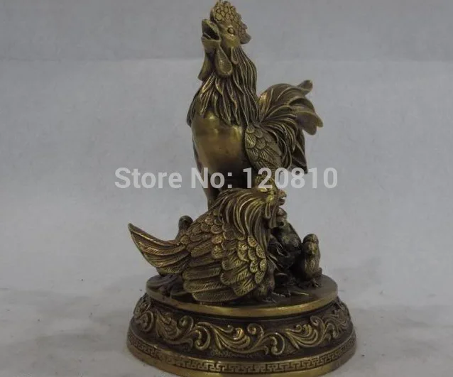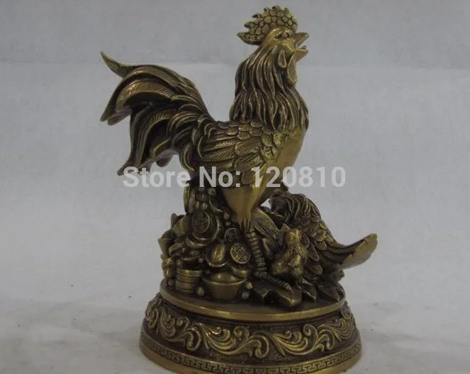 ORIGINAL Chinese Brass Copper rooster cock chicken family Gold ingot Feng shui figurine